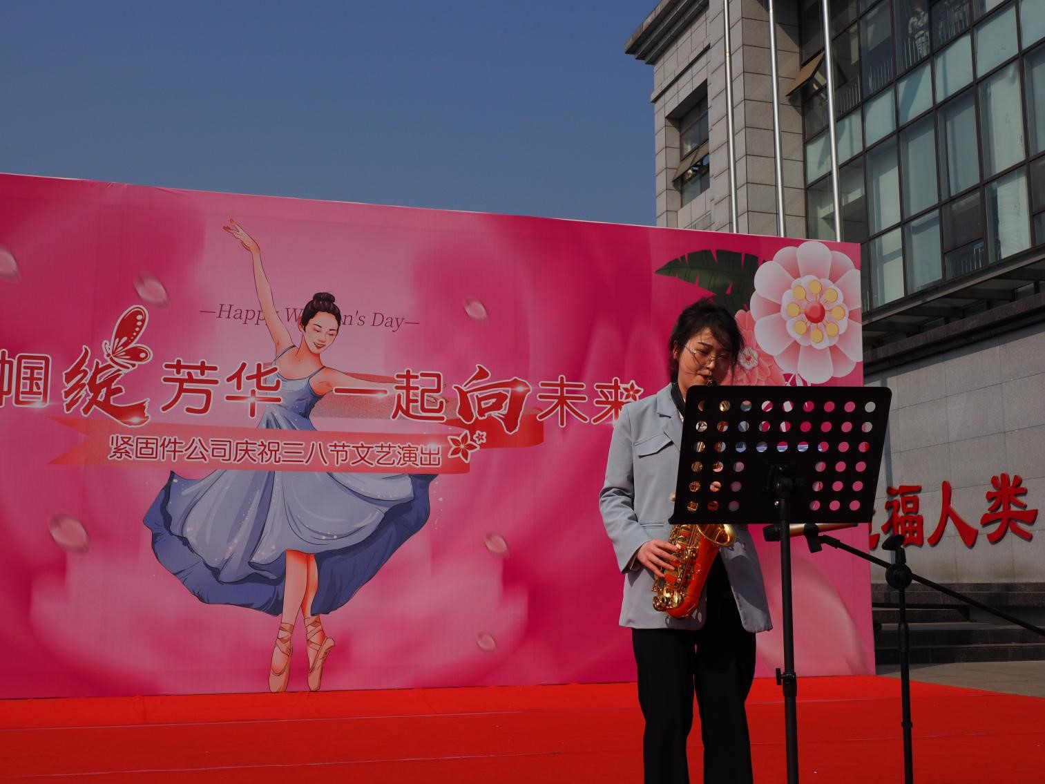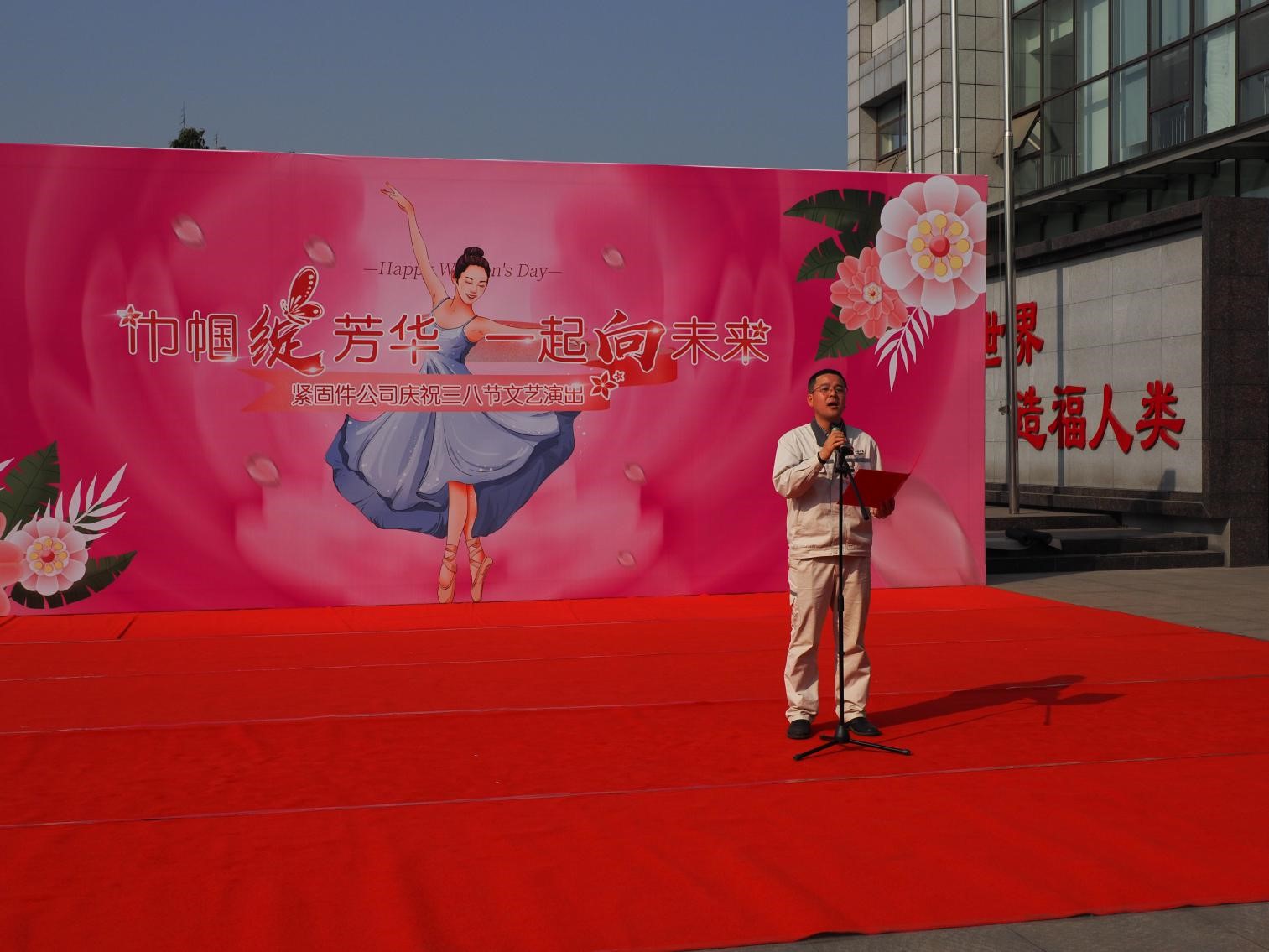 揭牌仪式后,紧固件公司领导班子 免费不收费看污在线观看-免费看污污-免费看污污污视频软件,中层干部领导,班组长及全体女工分别在紧固件公司小广场主席台就坐欣赏“巾帼绽芳华一起向未来”精彩文艺表演,表演活动由王力主持。